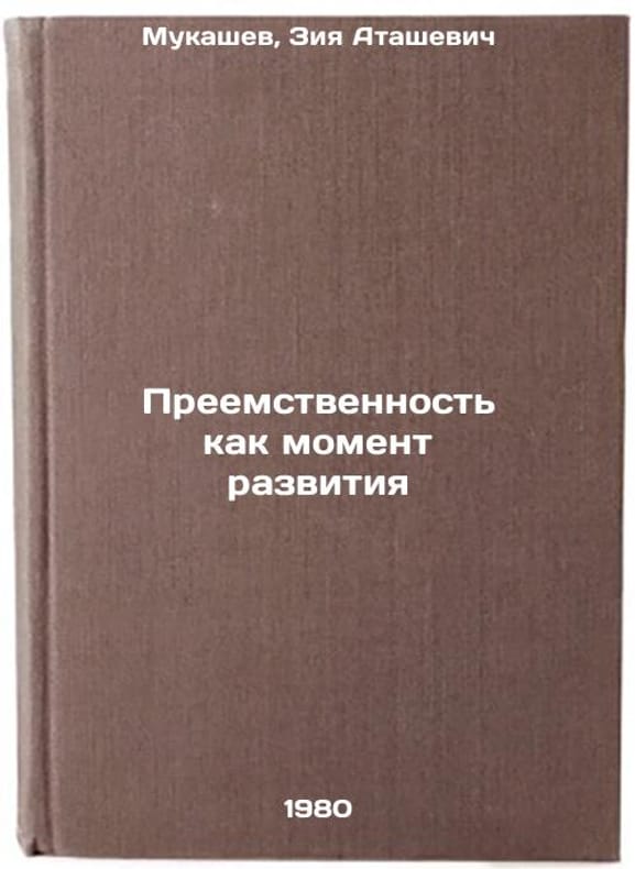 In Russian. Mukashev, Ziya Atashevich. Continuity as a moment of development. Almaty: Kazakhstan,. Preemstvennost' kak moment razvitiya. In Russian /Continuity as a Moment of Development . All images are for identification of editions only. Several books of the same edition may be available. Please feel free to request photos of available books. SKU1020411
