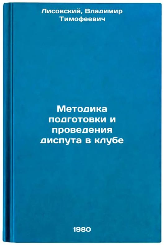 In Russian. Lisovsky, Vladimir Timofeevich. Method of preparing and holding a debate in the club. L.: VPSHK,. Metodika podgotovki i provedeniya disputa v klube. In Russian /Methodology for preparing and holding a debate in a club . All images are for identification of editions only. Several books of the same edition may be available. Please feel free to request photos of available books. SKU1020524