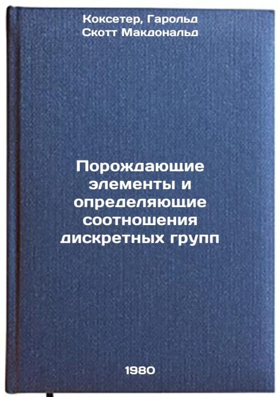 In Russian. Coxeter, Harold Scott MacDonald. Creating elements and determining ratios of discrete groups. Moscow: Science. Porozhdayushchie elementy i opredelyayushchie sootnosheniya diskretnykh grupp. In Russian /Generating elements and determining ratios of discrete groups . All images are for identification of editions only. Several books of the same edition may be available. Please feel free to request photos of available books. SKU1020765