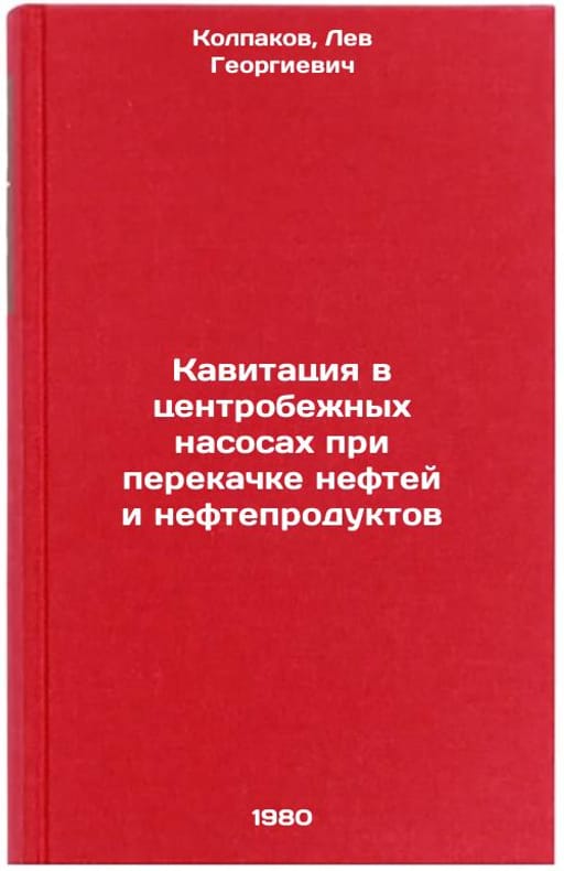 In Russian. Kolpakov, Lev Georgievich. Cavitation in centrifugal pumps when pumping oil and oil products. Moscow: Nedra. Kavitatsiya v tsentrobezhnykh nasosakh pri perekachke neftey i nefteproduktov. In Russian /Cavitation in centrifugal pumps when pumping oil and petroleum products . All images are for identification of editions only. Several books of the same edition may be available. Please feel free to request photos of available books. SKU1021297