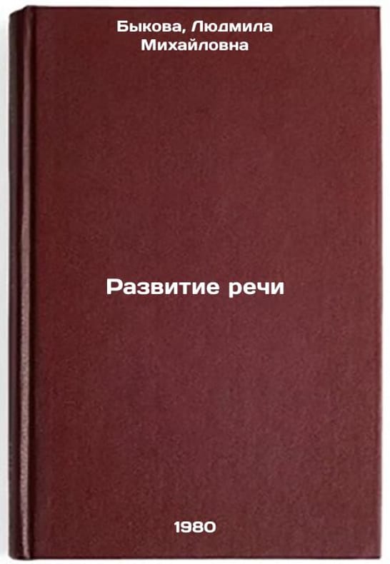 In Russian. Bykova, Lyudmila Mikhailovna. Development of Speech. M.: Enlightenment. All images are for identification of editions only. Several books of the same edition may be available. Please feel free to request photos of available books. SKU1025263