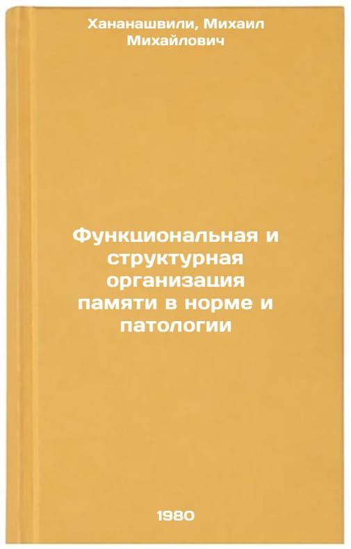 In Russian. Khananashvili, Mikhail Mikhailovich. Functional and Structural Organization of Memory in Norm and Pathology. Tbilisi: Metsniereba,. Funktsional'naya i strukturnaya organizatsiya pamyati v norme i patologii. In Russian /Functional and Structural Organization of Memory in Norm and Pathology . All images are for identification of editions only. Several books of the same edition may be available. Please feel free to request photos of available books. SKU1027294
