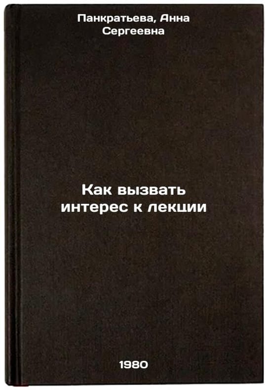 In Russian. Pankratieva, Anna Sergeevna. How to arouse interest in a lecture. Tashkent: about Knowledge of the Uzbek SSR,. All images are for identification of editions only. Several books of the same edition may be available. Please feel free to request photos of available books. SKU1028311