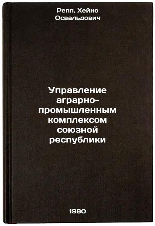 In Russian. Repp, Heino Oswaldovich. Management of the agrarian-industrial complex of the Union Republic. Tallinn: Valgus,. Upravlenie agrarno-promyshlennym kompleksom soyuznoy respubliki. In Russian /Management of the Agricultural and Industrial Complex of the Union Republic . All images are for identification of editions only. Several books of the same edition may be available. Please feel free to request photos of available books. SKU1029872
