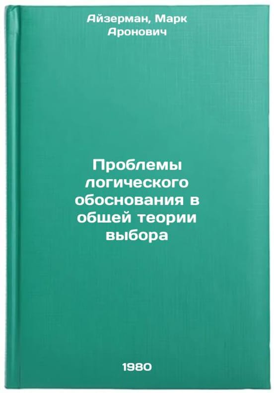 In Russian. Yzerman, Mark Aronovich. Problems of logical substantiation in general theory of choice. Problemy logicheskogo obosnovaniya v obshchey teorii vybora. In Russian /Problems of logical reasoning in the general theory of choice . All images are for identification of editions only. Several books of the same edition may be available. Please feel free to request photos of available books. SKU1030107