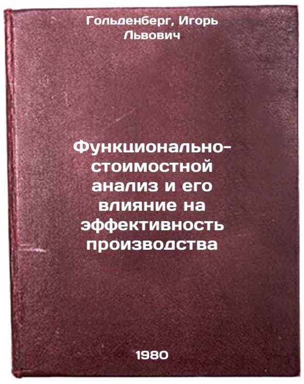 In Russian. Goldenberg, Igor Lvovich. Functional-cost analysis and its impact on production efficiency. Moscow: TsNIITEIlegpispispismash,. Funktsional'no-stoimostnoy analiz i ego vliyanie na effektivnost' proizvodstva. In Russian /Functional-cost analysis and its impact on production efficiency . All images are for identification of editions only. Several books of the same edition may be available. Please feel free to request photos of available books. SKU1030193
