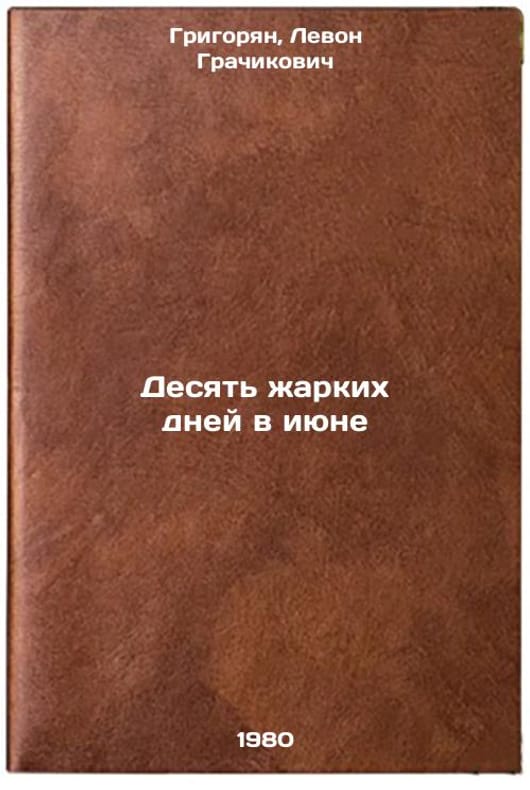 In Russian. Grigoryan, Levon Grachikovich. Ten hot days in June. Yerevan: Sovetakan thunder,. All images are for identification of editions only. Several books of the same edition may be available. Please feel free to request photos of available books. SKU1031059
