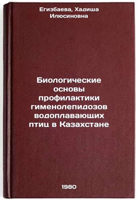 In Russian. Egizbaeva, Khadisha Ilyusinovna. Biological Bases for Prevention of Hymenolepidosis of Waterfowl in Kazakhstan. Almaty: Science,. Biologicheskie osnovy profilaktiki gimenolepidozov vodoplavayushchikh ptits v Kazakhstane. In Russian /Biological Bases for Prevention of Hymenolepidosis of Waterfowl in Kazakhstan . All images are for identification of editions only. Several books of the same edition may be available. Please feel free to request photos of available books. SKU1031749