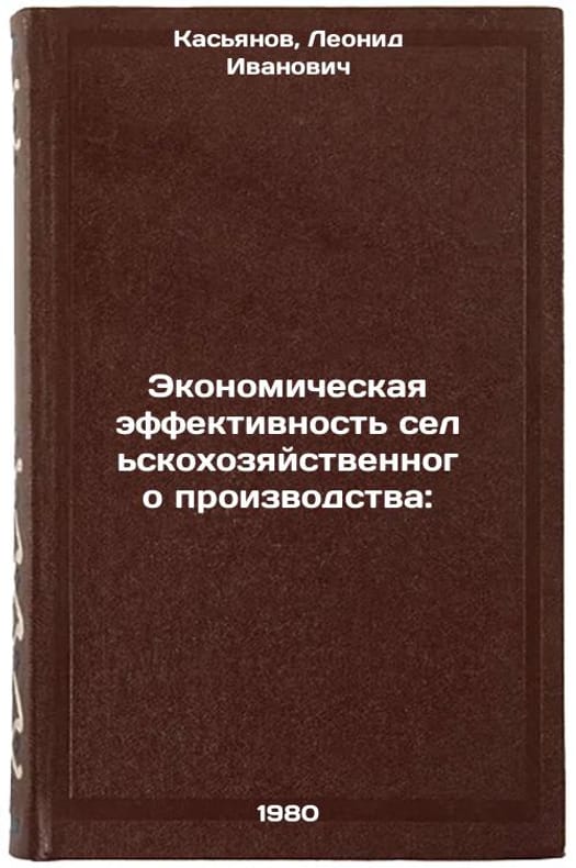 In Russian. Kasyanov, Leonid Ivanovich. Economic efficiency of agricultural production. Kyiv: USHA,. Ekonomicheskaya effektivnost' sel'skokhozyaystvennogo proizvodstva:. In Russian /Economic efficiency of agricultural production: . All images are for identification of editions only. Several books of the same edition may be available. Please feel free to request photos of available books. SKU1031828