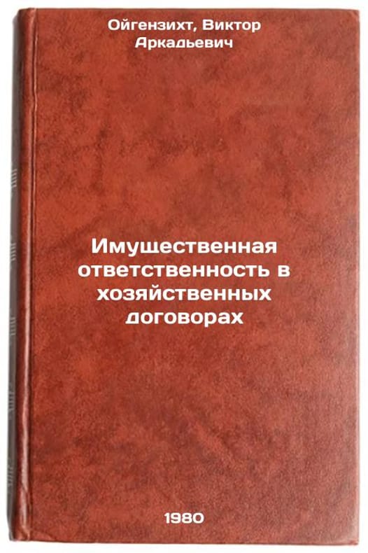 "Short description: In Russian. Eugenzicht, Viktor Arkadevich. Property liability in economic contracts. Dushanbe: Taj. un-t,. Imushchestvennaya otvetstvennost' v khozyaystvennykh dogovorakh. In Russian /Property Liability in Economic Contracts . All images are for identification of editions only. Several books of the same edition may be available. Please feel free to request photos of available books. SKU1033557"
