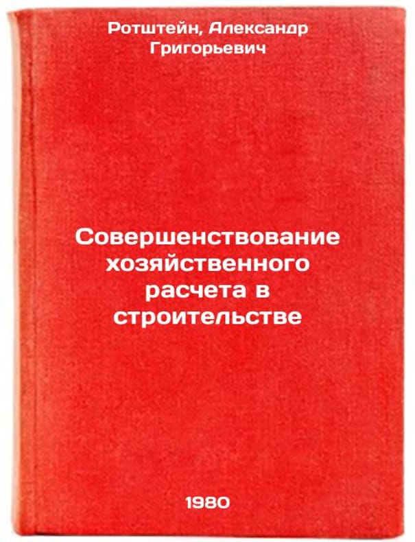 In Russian. Rotshtein, Alexander Grigorievich. Improvement of economic calculation in construction. Sovershenstvovanie khozyaystvennogo rascheta v stroitel'stve. In Russian /Improving Business Accounting in Construction . All images are for identification of editions only. Several books of the same edition may be available. Please feel free to request photos of available books. SKU1037737