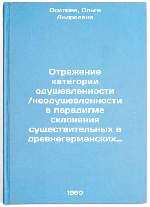 In Russian. Osipova, Olga Andreevna. Reflection of the animated / inanimate category in the paradigm of the decline of nouns in ancient German languages. Otrazhenie kategorii odushevlennosti .neodushevlennosti v paradigme skloneniya sushchestvitel'nykh v drevnegermanskikh yazykakh. In Russian /Reflection of the animation. inanimation category in the paradigm of the decline of nouns in ancient German languages . All images are for identification of editions only. Several books of the same edition may be available. Please feel free to request photos of available books. SKU1040461