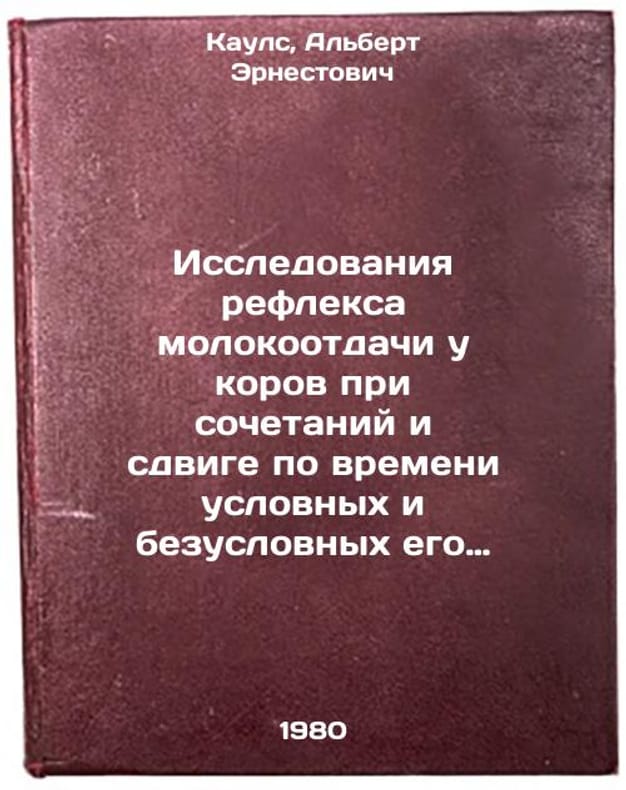 In Russian. Cowles, Albert Ernestovich. Studies of the milk output reflex in cows with the combination and timing of conditional and unconditional components. Riga: Avots,. Issledovaniya refleksa molokootdachi u korov pri sochetaniy i sdvige po vremeni uslovnykh i bezuslovnykh ego komponentov. In Russian /Studies of the milk output reflex in cows with combinations and time shifts of conditional and unconditional components . All images are for identification of editions only. Several books of the same edition may be available. Please feel free to request photos of available books. SKU1040531