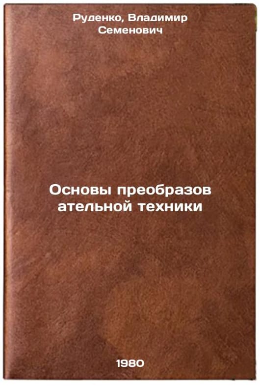 In Russian. Rudenko, Vladimir Semenovich. Fundamentals of Transformational Technique. Moscow: Higher School,. Osnovy preobrazovatel'noy tekhniki. In Russian /Basics of Transformational Technology . All images are for identification of editions only. Several books of the same edition may be available. Please feel free to request photos of available books. SKU1042228