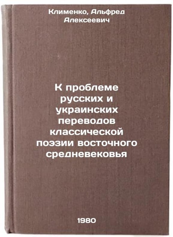 In Russian. Klimenko, Alfred Alekseevich. To the problem of Russian and Ukrainian translations of the classical poetry of the Eastern Middle Ages. Tashkent: Fan,. K probleme russkikh i ukrainskikh perevodov klassicheskoy poezii vostochnogo srednevekov'ya. In Russian /To the problem of Russian and Ukrainian translations of the classical poetry of the Eastern Middle Ages . All images are for identification of editions only. Several books of the same edition may be available. Please feel free to request photos of available books. SKU1042525