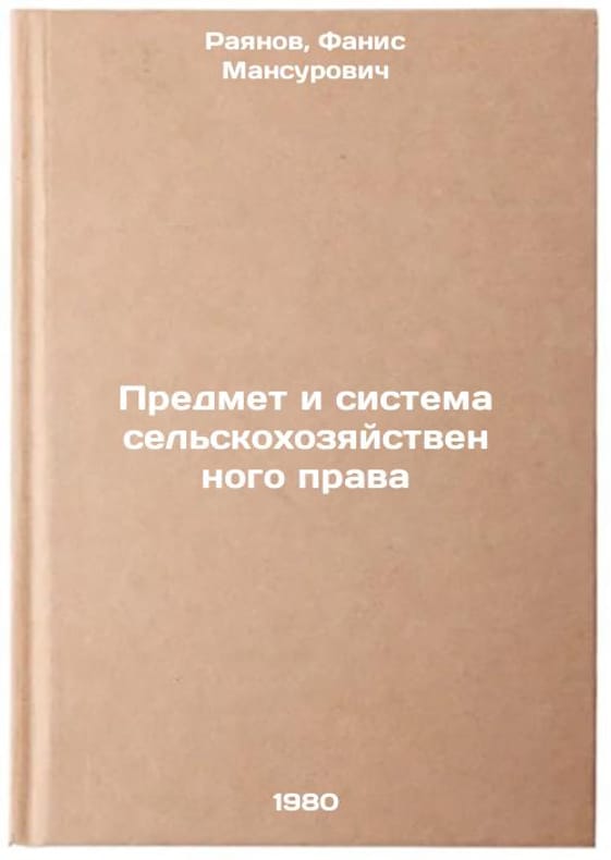 In Russian. Rayanov, Fanis Mansurovich. Subject and System of Agricultural Law. Ufa: BSU,. Predmet i sistema sel'skokhozyaystvennogo prava. In Russian /Subject and System of Agricultural Law . All images are for identification of editions only. Several books of the same edition may be available. Please feel free to request photos of available books. SKU1055357