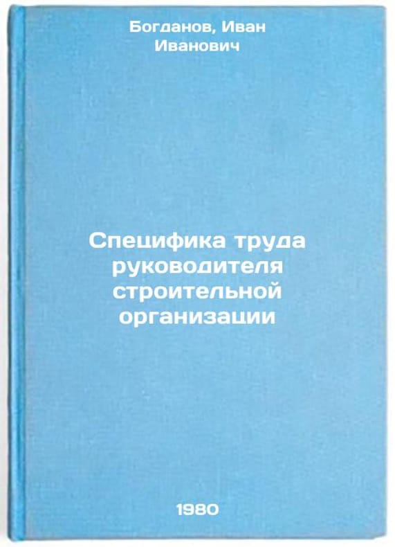 In Russian. Bogdanov, Ivan Ivanovich. The Specific Work of the Head of a Construction Organization. Moscow: CMIPCS, 1980. Spetsifika truda rukovoditelya stroitel'noy organizatsii. In Russian /The Specific Work of the Head of a Construction Organization . All images are for identification of editions only. Several books of the same edition may be available. Please feel free to request photos of available books. SKU2102390