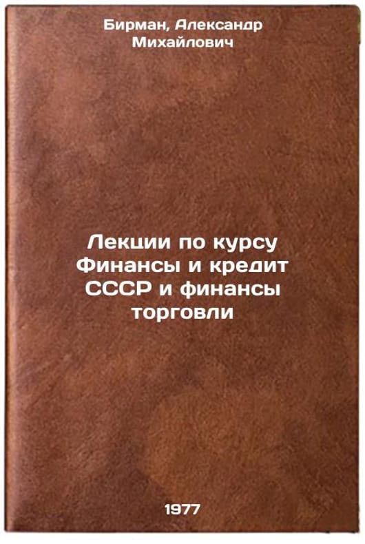 In Russian. Birman, Alexander Mikhailovich. Lectures on the course Finance and Credit of the USSR and Trade Finance. Moscow: 1975-1977. Lektsii po kursu Finansy i kredit SSSR i finansy torgovli. In Russian /Lectures on the USSR Finance and Credit and Trade Finance Course . All images are for identification of editions only. Several books of the same edition may be available. Please feel free to request photos of available books. SKU6776615