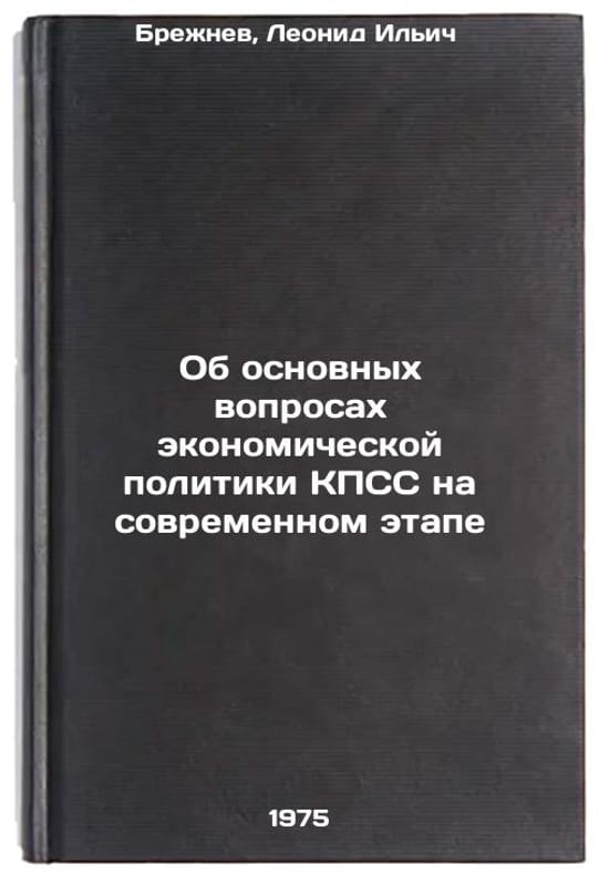 In Russian. Brezhnev, Leonid Ilyich. On the main issues of economic policy of the CPSU at the present stage. Moscow: Politizdat, 1975. Ob osnovnykh voprosakh ekonomicheskoy politiki KPSS na sovremennom etape. In Russian /On the main issues of economic policy of the CPSU at the present stage. All images are for identification of editions only. Several books of the same edition may be available. Please feel free to request photos of available books. SKU6776630