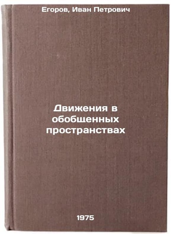 In Russian. Egorov, Ivan Petrovich. Movements in Generalized Spaces. Ryazan: 1975-. Dvizheniya v obobshchennykh prostranstvakh. In Russian /Movements in Generalized Spaces. All images are for identification of editions only. Several books of the same edition may be available. Please feel free to request photos of available books. SKU6777019