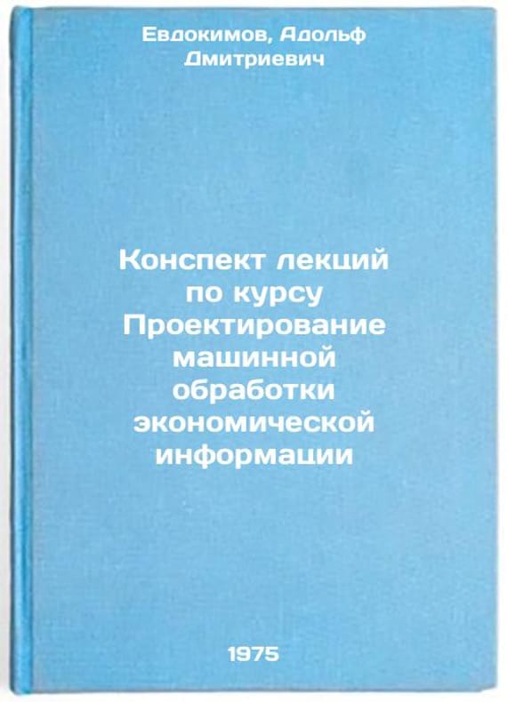 In Russian. Evdokimov, Adolf Dmitrievich. Summary of lectures on the course Engineering of Machine Processing of Economic Information. Moscow: 1975-. Konspekt lektsiy po kursu Proektirovanie mashinnoy obrabotki ekonomicheskoy informatsii. In Russian /Lecture notes on the course Economic Information Machine Processing Design. All images are for identification of editions only. Several books of the same edition may be available. Please feel free to request photos of available books. SKU6777173