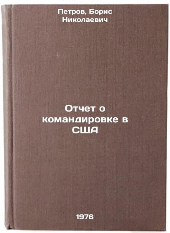 In Russian. Petrov, Boris Nikolaevich. Report on a mission to the USA. Moscow: 1976. Otchet o komandirovke v SShA. In Russian /Report on a mission to the United States . All images are for identification of editions only. Several books of the same edition may be available. Please feel free to request photos of available books. SKU6780831