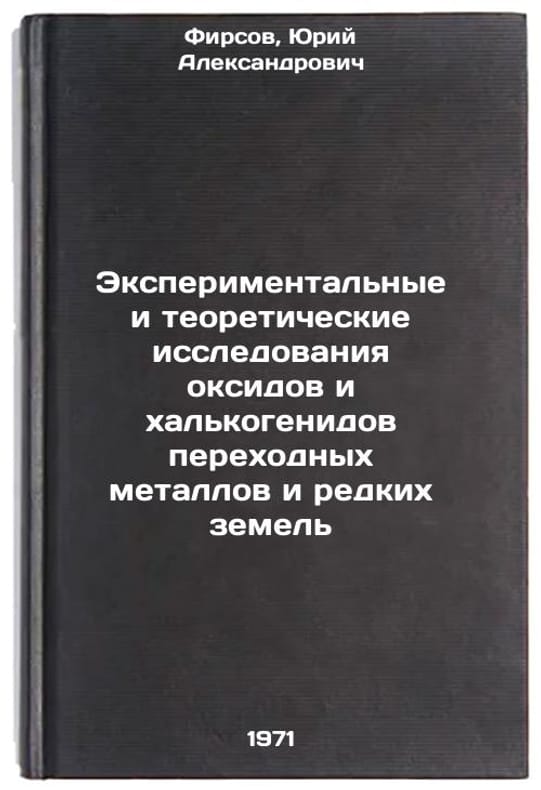 In Russian. Firsov, Yuri Alexandrovich. Experimental and Theoretical Studies of Oxides and Chalcogenides of Transitional Metals and Rare Lands. Leningrad: 1971-. Eksperimental'nye i teoreticheskie issledovaniya oksidov i khal'kogenidov perekhodnykh metallov i redkikh zemel'. In Russian /Experimental and Theoretical Research on Oxides and Halcogenides of Transitional Metals and Rare Lands . All images are for identification of editions only. Several books of the same edition may be available. Please feel free to request photos of available books. SKU6783095