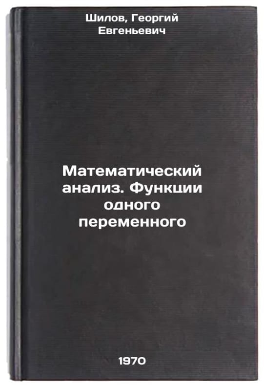 In Russian. Shilov, Georgy Evgenievich. Mathematical analysis. Functions of one variable. Moscow: Science, 1969-1970. Matematicheskiy analiz. Funktsii odnogo peremennogo. In Russian /Mathematical analysis. Functions of one variable . All images are for identification of editions only. Several books of the same edition may be available. Please feel free to request photos of available books. SKU6784545