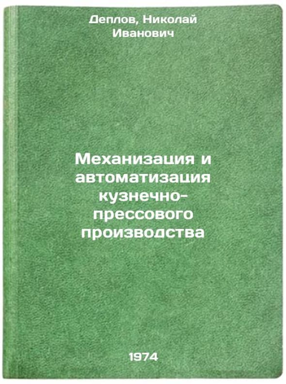 In Russian. Deplov, Nikolai Ivanovich. Mechanization and automation of forging and pressing production. Rostov n / a: 1973, issued in 1974. Mekhanizatsiya i avtomatizatsiya kuznechno-pressovogo proizvodstva. In Russian /Mechanization and automation of the forging and pressing industry. All images are for identification of editions only. Several books of the same edition may be available. Please feel free to request photos of available books. SKU6784704