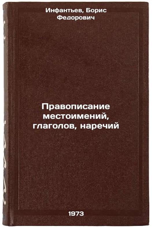 In Russian. Infantyev, Boris Fedorovich. The spelling of pronouns, verbs, and adverbs. Riga: 1973. Pravopisanie mestoimeniy, glagolov, narechiy. In Russian/The spelling of pronouns, verbs, and dialects. All images are for identification of editions only. Several books of the same edition may be available. Please feel free to request photos of available books. SKU6785362