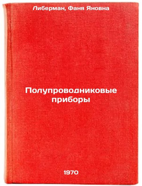 In Russian. Lieberman, Fanya Yanovna. Semiconductor Devices. Moscow: 1970. All images are for identification of editions only. Several books of the same edition may be available. Please feel free to request photos of available books. SKU6787418