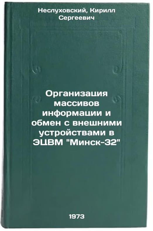 In Russian. Neslukhovsky, Kirill Sergeevich. Organization of arrays of information and exchange with external devices in the computer Minsk-32. Moscow: 1973. Organizatsiya massivov informatsii i obmen s vneshnimi ustroystvami v ETsVM Minsk-32. In Russian/Organization of information arrays and exchange with external devices in the Minsk-32 computer. All images are for identification of editions only. Several books of the same edition may be available. Please feel free to request photos of available books. SKU6789423