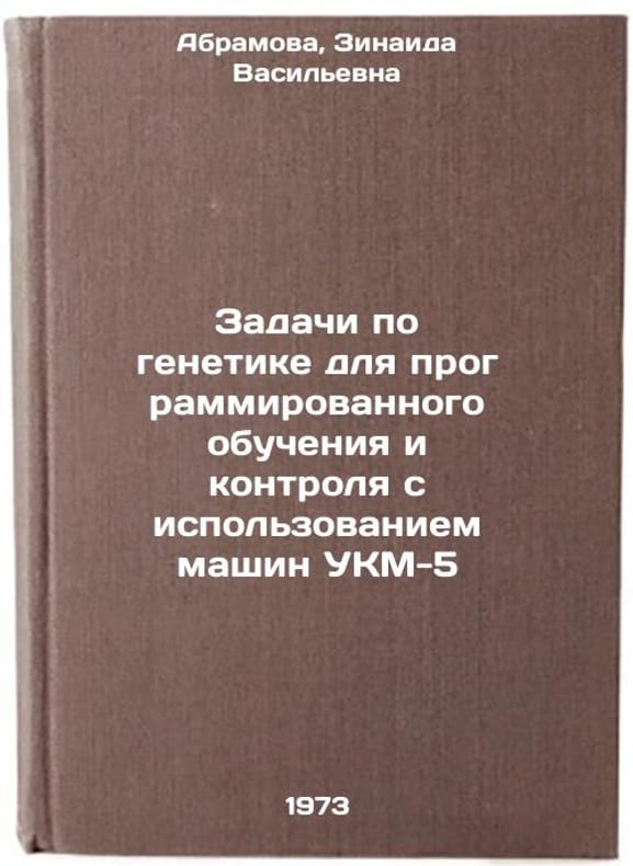 "In Russian. Abramova, Zinaida Vasilyevna. Tasks in genetics for programmed training and control using UKM-5 machines. Leningrad; Pushkin: 1973. Zadachi po genetike dlya programmirovannogo obucheniya i kontrolya s ispolzovaniem mashin UKM-5. In Russian/Genetic tasks for programmed learning and control using UCM-5 machines. All images are for identification of editions only. Several books of the same edition may be available. Please feel free to request photos of available books. SKU6790641"