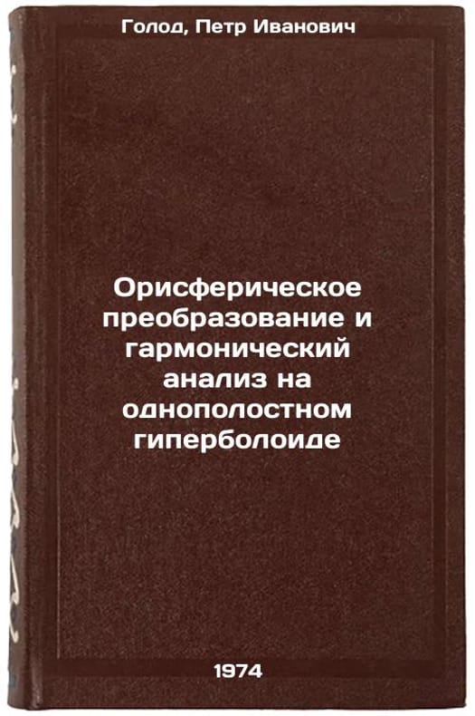 In Russian. Hunger, Pyotr Ivanovich. Orispherical transformation and harmonic analysis on a single-cavity hyperboloid. Kiev: ITF, 1974-. Orisfericheskoe preobrazovanie i garmonicheskiy analiz na odnopolostnom giperboloide. In Russian /Orispherical transformation and harmonic analysis on a single-cavity hyperboloid. All images are for identification of editions only. Several books of the same edition may be available. Please feel free to request photos of available books. SKU6793457