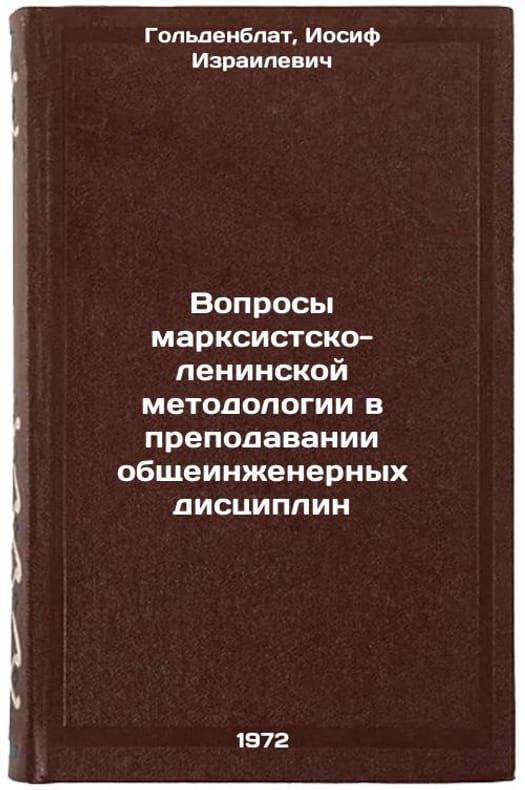 In Russian. Goldenblat, Joseph I. Issues of Marxist-Leninist Methodology in Teaching General Engineering. Moscow: 1972-. Voprosy marksistsko-leninskoy metodologii v prepodavanii obshcheinzhenernykh distsiplin. In Russian/Issues of Marxist-Leninist Methodology in Teaching General Engineering. All images are for identification of editions only. Several books of the same edition may be available. Please feel free to request photos of available books. SKU6793461