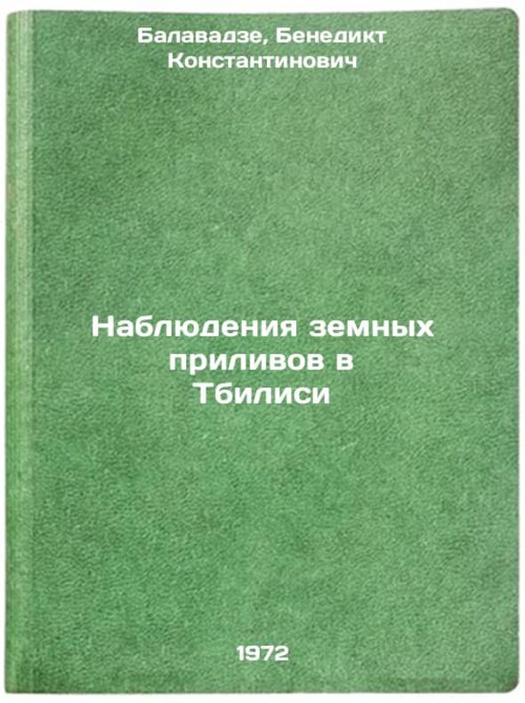 In Russian. Balavadze, Benedikt Konstantinovich. Observations of the Earths tides in Tbilisi. Tbilisi: Metsniereba, 1972-. Nablyudeniya zemnykh prilivov v Tbilisi. In Russian/Earth Tide Observations in Tbilisi. All images are for identification of editions only. Several books of the same edition may be available. Please feel free to request photos of available books. SKU6793643