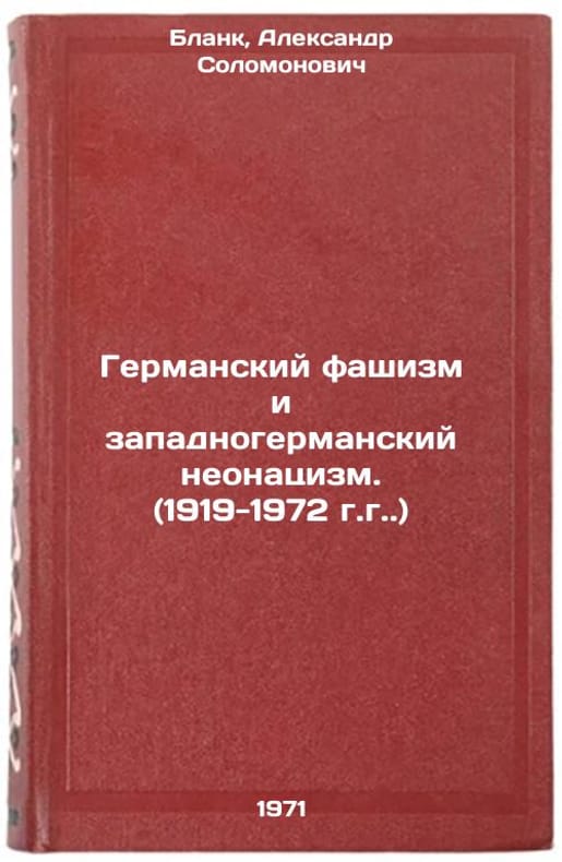 In Russian. Blank, Alexander Solomonovich. German Fascism and West German Neo-Nazism (1919-1972). Vologda: 1971-. Germanskiy fashizm i zapadnogermanskiy neonatsizm. (1919-1972 gg.). In Russian /German Fascism and West German Neo-Nazism. (1919-1972) . All images are for identification of editions only. Several books of the same edition may be available. Please feel free to request photos of available books. SKU6794068