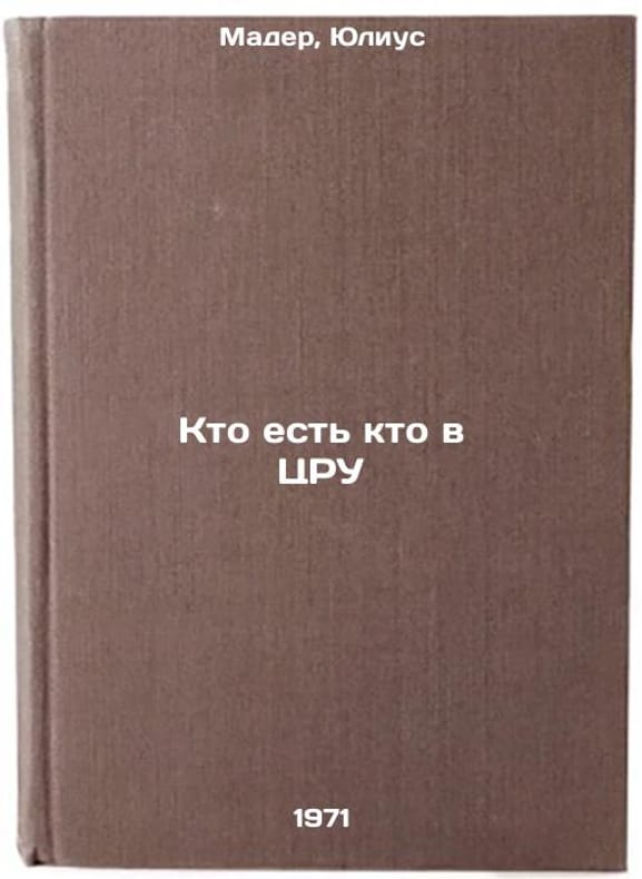 In Russian. Mader, Julius. Who's Who in the CIA. Moscow: VNITSI, 1971. All images are for identification of editions only. Several books of the same edition may be available. Please feel free to request photos of available books. SKU6796577