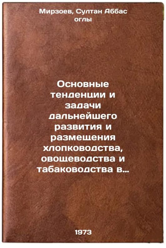 In Russian. Mirzoyev, Sultan Abbas ogly. Main trends and challenges for the further development and deployment of cotton, vegetable and tobacco production in the Azerbaijan SSR. Baku: 1973-. Osnovnye tendentsii i zadachi dalneyshego razvitiya i razmeshcheniya khlopkovodstva, ovoshchevodstva i tabakovodstva v Azerbaydzhanskoy SSR. In Russian/Major Trends and Challenges of Further Development and Placement of Cotton, Vegetable and Tobacco Growing in the Azerbaijan SSR. All images are for identification of editions only. Several books of the same edition may be available. Please feel free to request photos of available books. SKU6797830