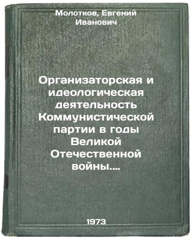 In Russian. Molotkov, Evgeny Ivanovich. Organizational and ideological activity of the Communist Party during the Great Patriotic War (1941-1945). Leningrad: 1973-. Organizatorskaya i ideologicheskaya deyatelnost Kommunisticheskoy partii v gody Velikoy Otechestvennoy voyny. (1941-1945 gg.). In Russian/Organizational and ideological activities of the Communist Party during the Great Patriotic War (1941-1945). All images are for identification of editions only. Several books of the same edition may be available. Please feel free to request photos of available books. SKU6797924