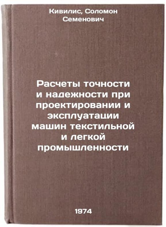In Russian. Kivilis, Solomon Semenovich. Calculation of accuracy and reliability in the design and operation of textile and light industry machinery. Moscow: 1974-. Raschety tochnosti i nadezhnosti pri proektirovanii i ekspluatatsii mashin tekstil'noy i legkoy promyshlennosti. In Russian /Calculation of accuracy and reliability in the design and operation of textile and light machinery. All images are for identification of editions only. Several books of the same edition may be available. Please feel free to request photos of available books. SKU6798478