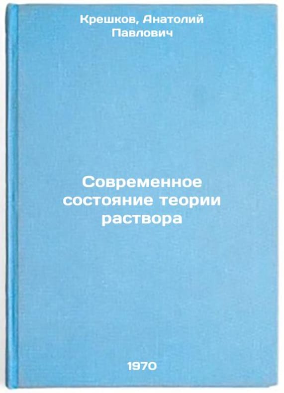In Russian. Kreshkov, Anatoly Pavlovich. The Current State of Solution Theory. Ulan-Ude: Buryat Publishing House, 1970. Sovremennoe sostoyanie teorii rastvora. In Russian /Current state of solution theory . All images are for identification of editions only. Several books of the same edition may be available. Please feel free to request photos of available books. SKU6799430