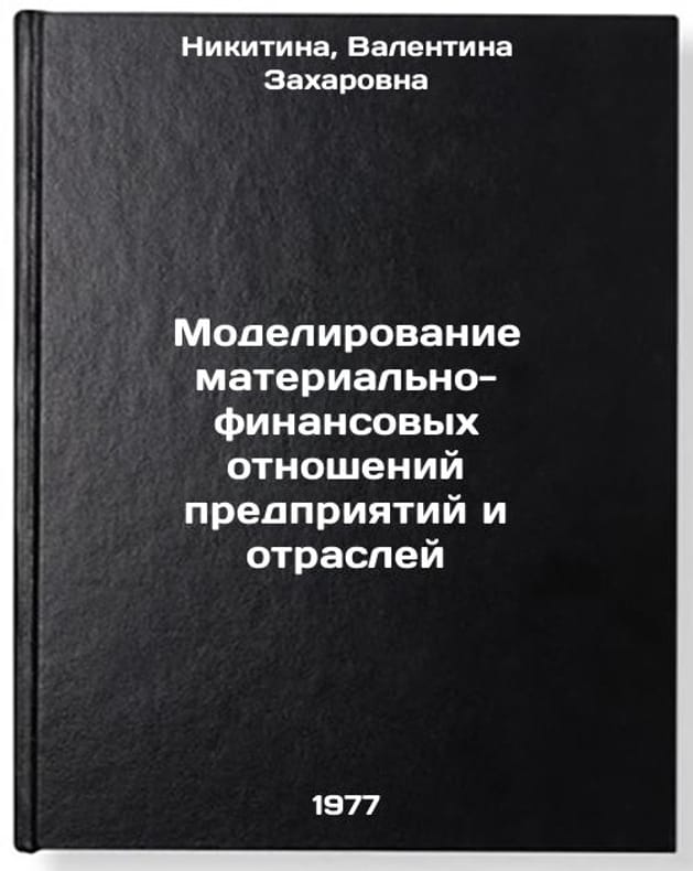 In Russian. Nikitina, Valentina Zakharovna. Modeling the Material and Financial Relations of Enterprises and Industries. Moscow: Science, 1977. Modelirovanie material'no-finansovykh otnosheniy predpriyatiy i otrasley. In Russian /Modelling the Material and Financial Relationships of Enterprises and Industries . All images are for identification of editions only. Several books of the same edition may be available. Please feel free to request photos of available books. SKU6802940