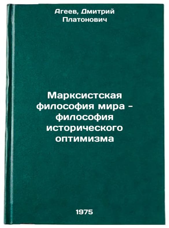 In Russian. Ageev, Dmitry Platonovich. The Marxist Philosophy of the World - the Philosophy of Historical Optimism. Leningrad: The Knowledge of the RSFSR. Leningrad Organization, 1975. Marksistskaya filosofiya mira - filosofiya istoricheskogo optimizma. In Russian /The Marxist Philosophy of Peace - The Philosophy of Historic Optimism. All images are for identification of editions only. Several books of the same edition may be available. Please feel free to request photos of available books. SKU6904166