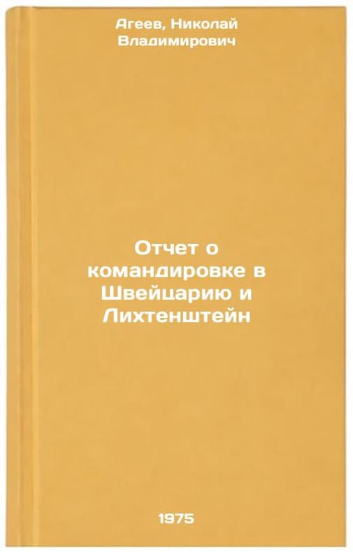 In Russian. Ageev, Nikolai Vladimirovich. Report on mission to Switzerland and Liechtenstein. Moscow: 1975. Otchet o komandirovke v Shveytsariyu i Likhtenshteyn. In Russian /Report on mission to Switzerland and Liechtenstein. All images are for identification of editions only. Several books of the same edition may be available. Please feel free to request photos of available books. SKU6904168