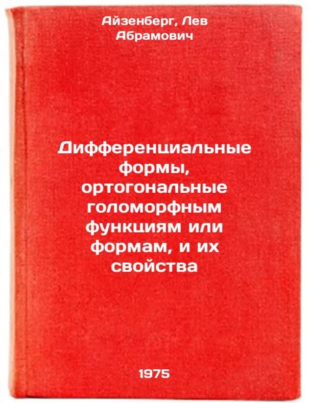 In Russian. Eisenberg, Lev Abramovich. Differential forms, orthogonal holomorphic functions or forms, and their properties. Novosibirsk: Science, Siberian Branch, 1975. Differentsial'nye formy, ortogonal'nye golomorfnym funktsiyam ili formam, i ikh svoystva. In Russian /Differential forms, orthogonal holomorphic functions or forms, and their properties. All images are for identification of editions only. Several books of the same edition may be available. Please feel free to request photos of available books. SKU6904494
