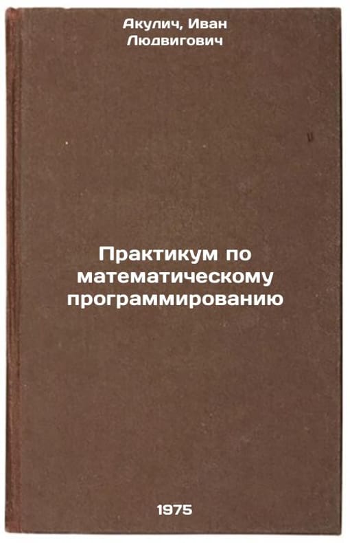 In Russian. Akulich, Ivan Lyudvigovich. Workshop on Mathematical Programming. Riga: Latvian State University, 1975. Praktikum po matematicheskomu programmirovaniyu. In Russian /Workshop on Mathematical Programming. All images are for identification of editions only. Several books of the same edition may be available. Please feel free to request photos of available books. SKU6904908