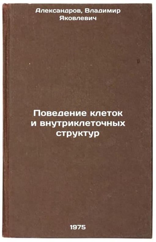 In Russian. Alexandrov, Vladimir Yakovlevich. Behavior of cells and intracellular structures. Moscow: Knowledge, 1975. Povedenie kletok i vnutrikletochnykh struktur. In Russian /Behaviour of cells and intracellular structures. All images are for identification of editions only. Several books of the same edition may be available. Please feel free to request photos of available books. SKU6905010