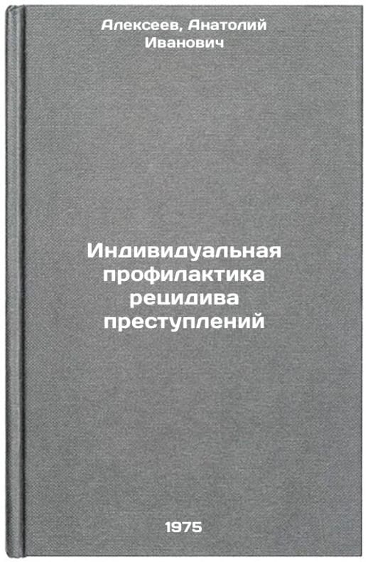 In Russian. Alekseev, Anatoly Ivanovich. Individual prevention of recidivism. Moscow: 1975. Individual'naya profilaktika retsidiva prestupleniy. In Russian /Individual prevention of recidivism. All images are for identification of editions only. Several books of the same edition may be available. Please feel free to request photos of available books. SKU6905093