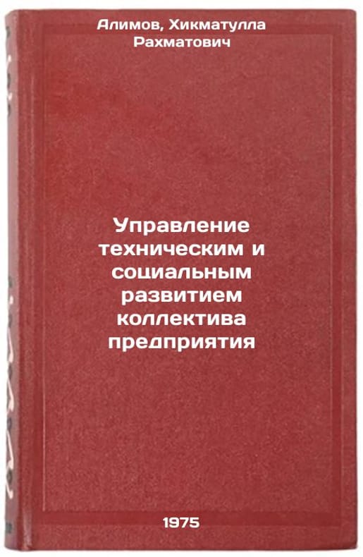 In Russian. Alimov, Khikmatulla Rakhmatovich. Management of technical and social development of the enterprise's staff. Tashkent: Uzbekistan, 1975. Upravlenie tekhnicheskim i sotsial'nym razvitiem kollektiva predpriyatiya. In Russian /Managing the technical and social development of the enterprise team. All images are for identification of editions only. Several books of the same edition may be available. Please feel free to request photos of available books. SKU6905378